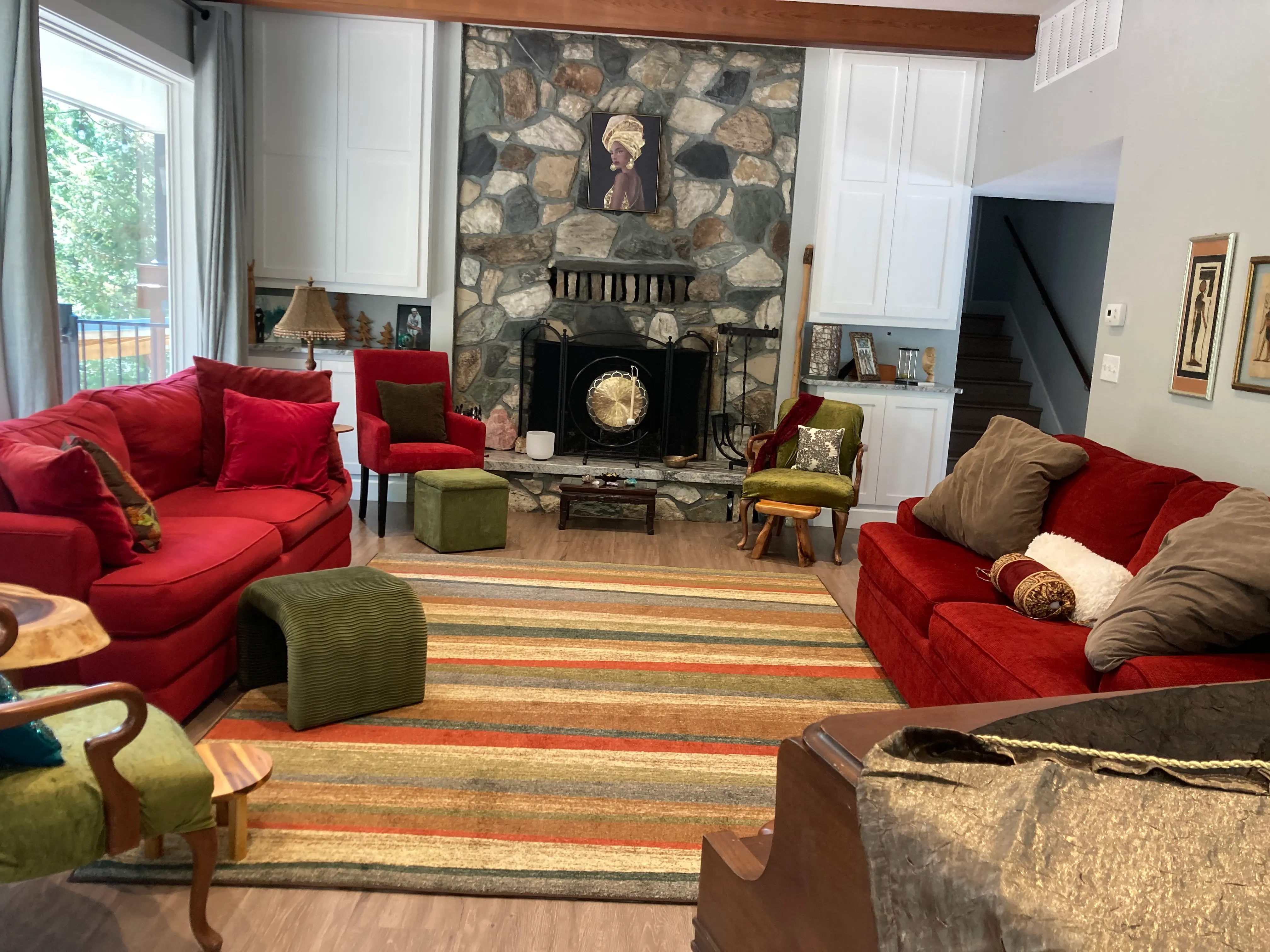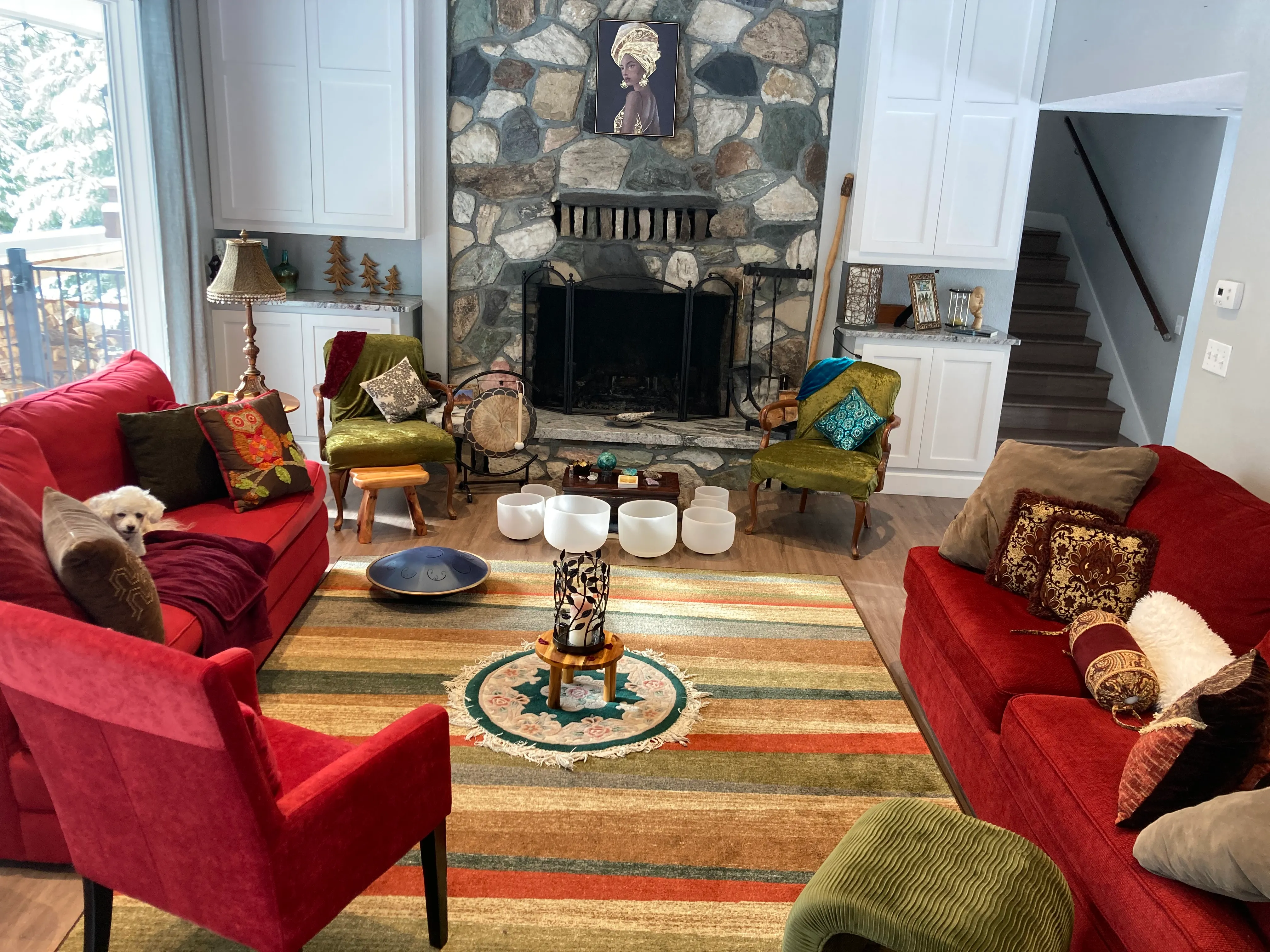 Host your own intimate workshop gathering here for up to 8-10 people. Hold your ceremony inside by the fireplace, out on the lawn or on the mountaintop mound. The property is very private, situated in the forest with a creek rushing through it, and could be utilized by you and your tribe.